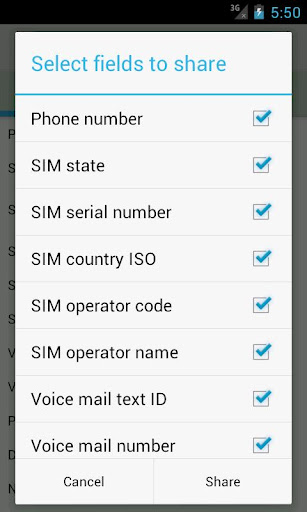 Premendo sul codice che ci interessa questo verrà automaticamente salvato negli appunti, così da poterlo incollare su un SMS, una email ecc. E' possibile cliccare sul tasto SHARE in alto a destra, e condividere le informazioni che vogliamo, flaggando il relativo campo, con chi vogliamo e con quale applicazione.